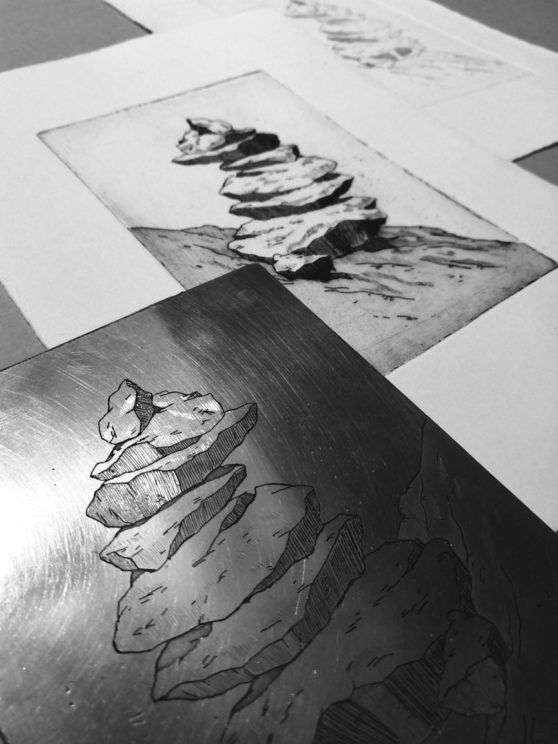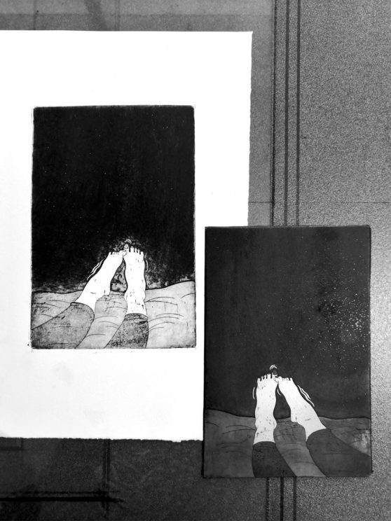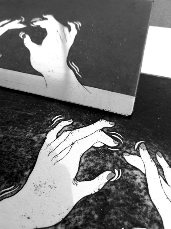 Série de gravure réalisée lors d’une résidence à l’Atelier Imago de Strasbourg en hiver 2020-2021. différentes techniques ont été utilisées telles que l’eau forte et l’aquatinte, la linogravure ou le chine-collé.